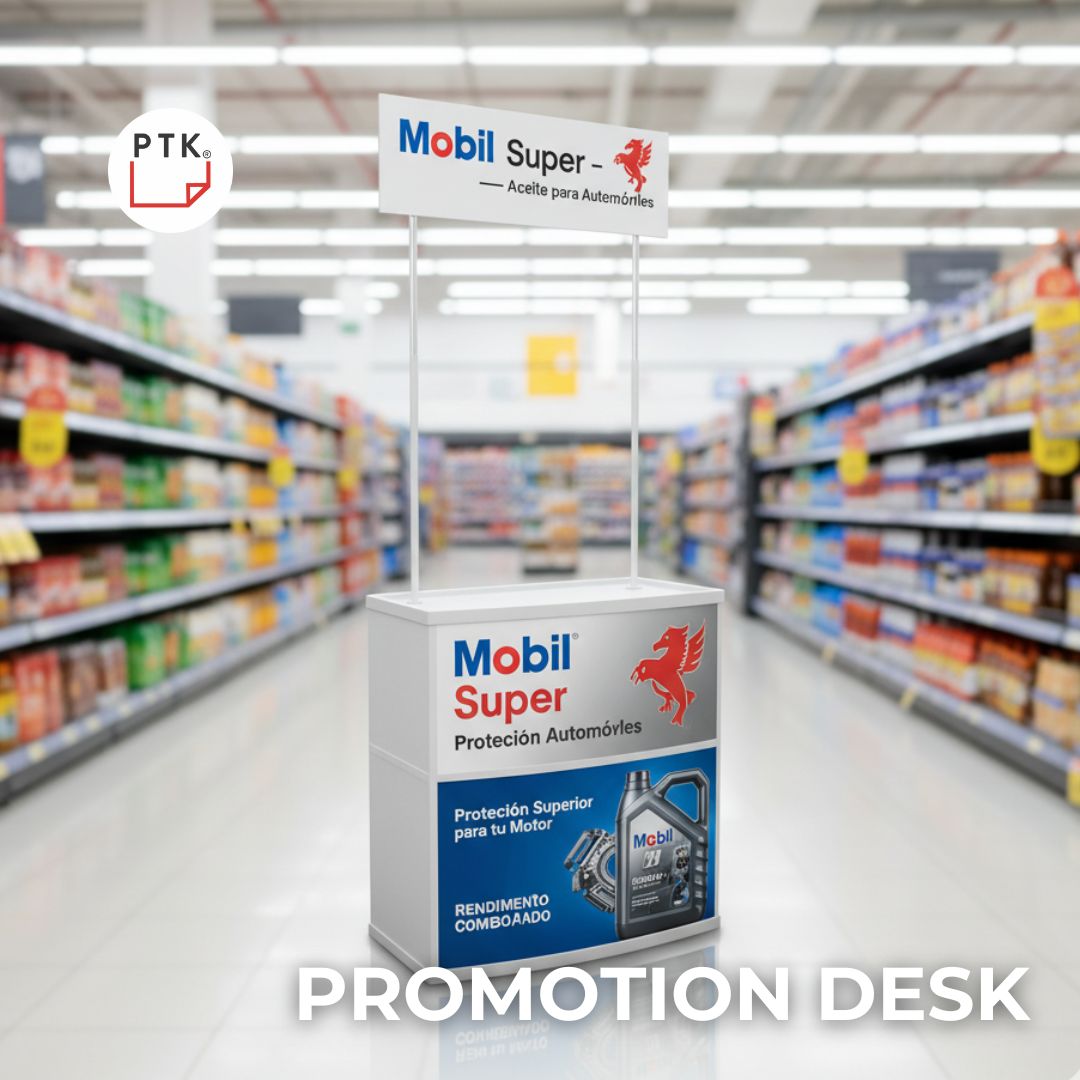 Estructura ligera con superficie amplia y panel personalizable para tu marca.